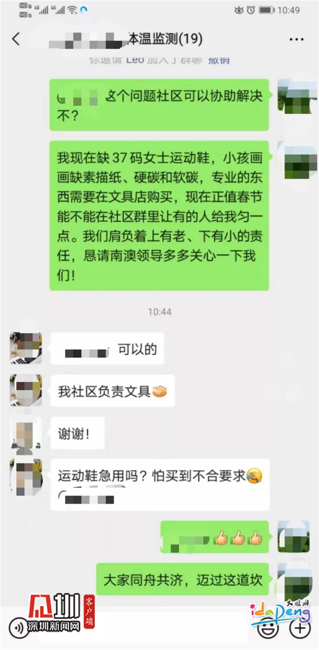 身处隔离区,日常生活难免受到影响,医生便通过微信群及时了解他们的生活所需,并向社区求助,尽可能地提高他们在隔离区的生活质量。