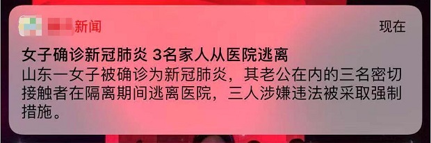 见圳客户端•深圳新闻网2020年1月30日讯(见圳客户端、深圳新闻网记者 张玲)这个春节,有点不一样。疫情当前,需要全民齐努力。前不久一条新闻弹窗,相信很多人都看到了:山东一女子被确诊为新型冠状病毒感染的肺炎,她的老公等三名密切接触者在隔离期间逃离医院,三人涉嫌违法被采取强制措施。