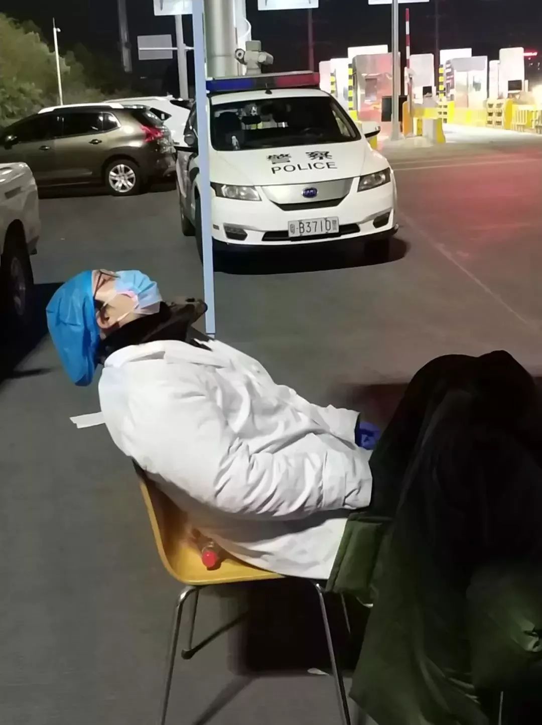 “我们采取轮班制,因高速路口车流量大,除了吃饭喝水,其余时间都在给返深人员检测体温。”照片拍摄者陈伟标说。他也是慢性病防治中心的医生,同是这次检疫一线的医务人员,看到在寒夜中连续站立工作近7个小时的南月丽,疲惫地仰靠在椅子上休息,心中的触动让他留下了这个珍贵瞬间,也成了防控疫情一线医务人员的真实写照。
