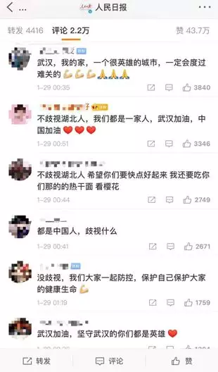 我们抓紧时间防疫,也抓紧时间去温暖身边受疫情伤害的湖北人、广东人、浙江人……言语虽轻,但一声声加油足以撑起抗疫信心。