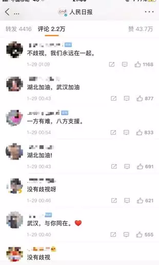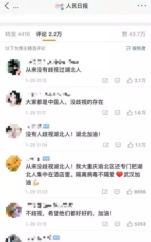在武汉市委书记回应歧视湖北人的微博下面,