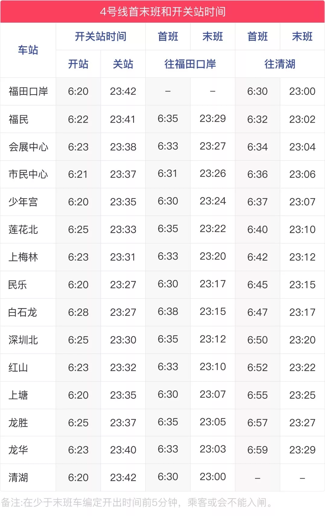 4号线运营时刻表