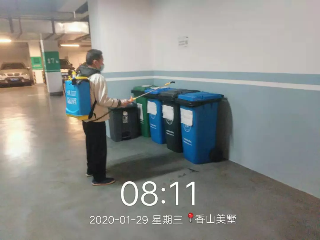 为防止病毒滋生,根据小区情况做好消杀方案,加大消杀频次及范围,对小区楼道、园区、儿童游乐场、垃圾放置点进行反复,全面消杀消毒工作。