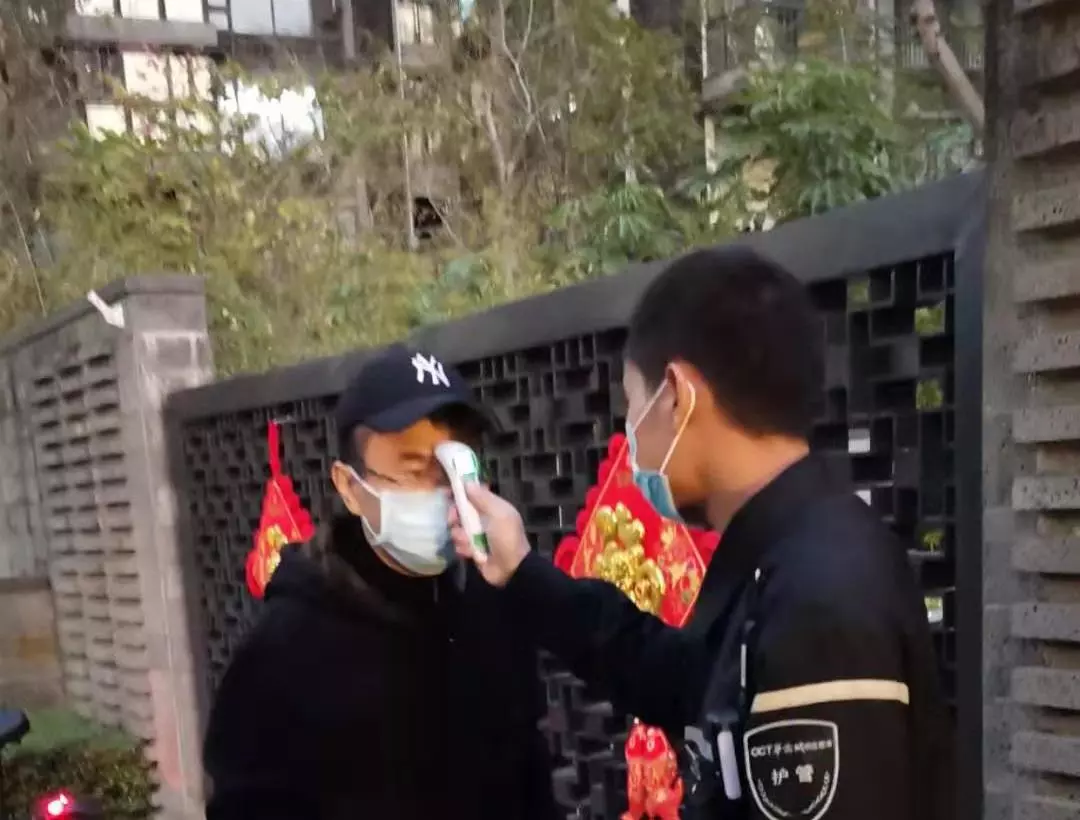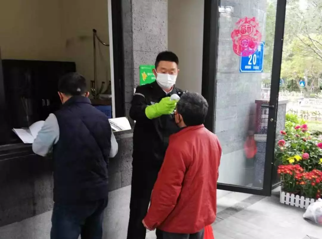 对车辆和人员出入取消刷卡自动开闸,改为手动出入开闸,禁止外来人员出入;门口、车道岗配备测温仪,对所有进出小区人员进行体温测量,并做好登记。