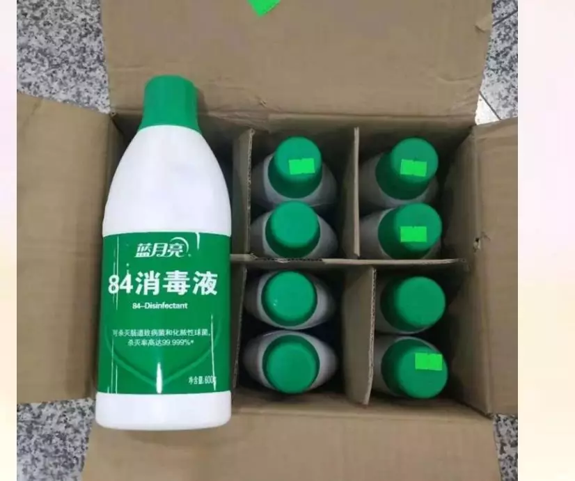 看到了满满一箱消毒液