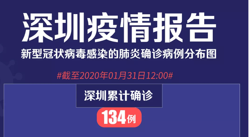 见圳客户端· 深圳新闻网2020年1月31日讯(见圳客户端、深圳新闻网记者 刘梦婷)截至1月31日12时,深圳累计确诊的“新型肺炎”病例已达到134例。