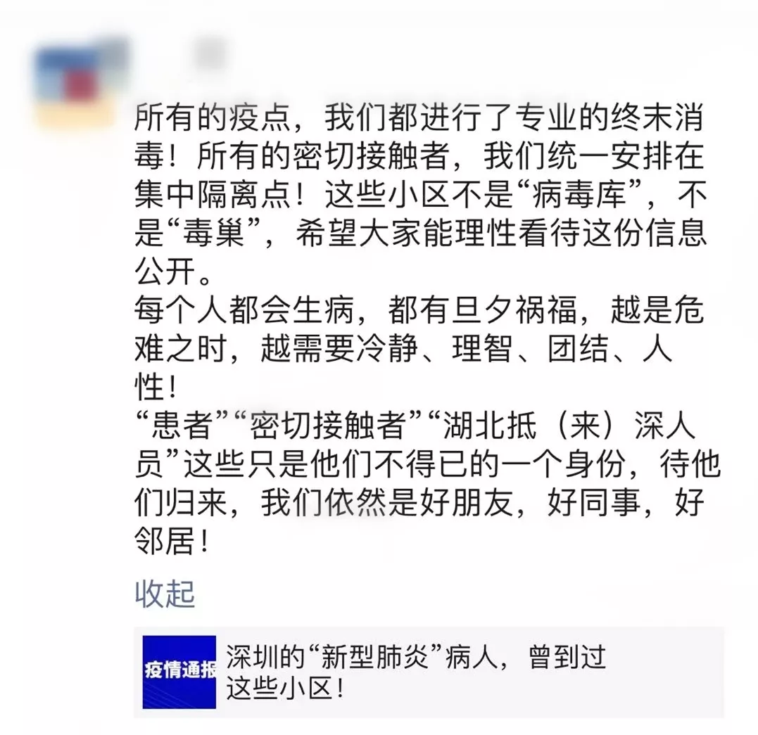 根据国家卫健委疾控局“以社区防控为主”、加强“群防群控”的通知精神,深圳于1月30日晚响应市民的强烈呼声,公布了第一批31个曾有“新型肺炎”病人逗留的小区(场所)名单。