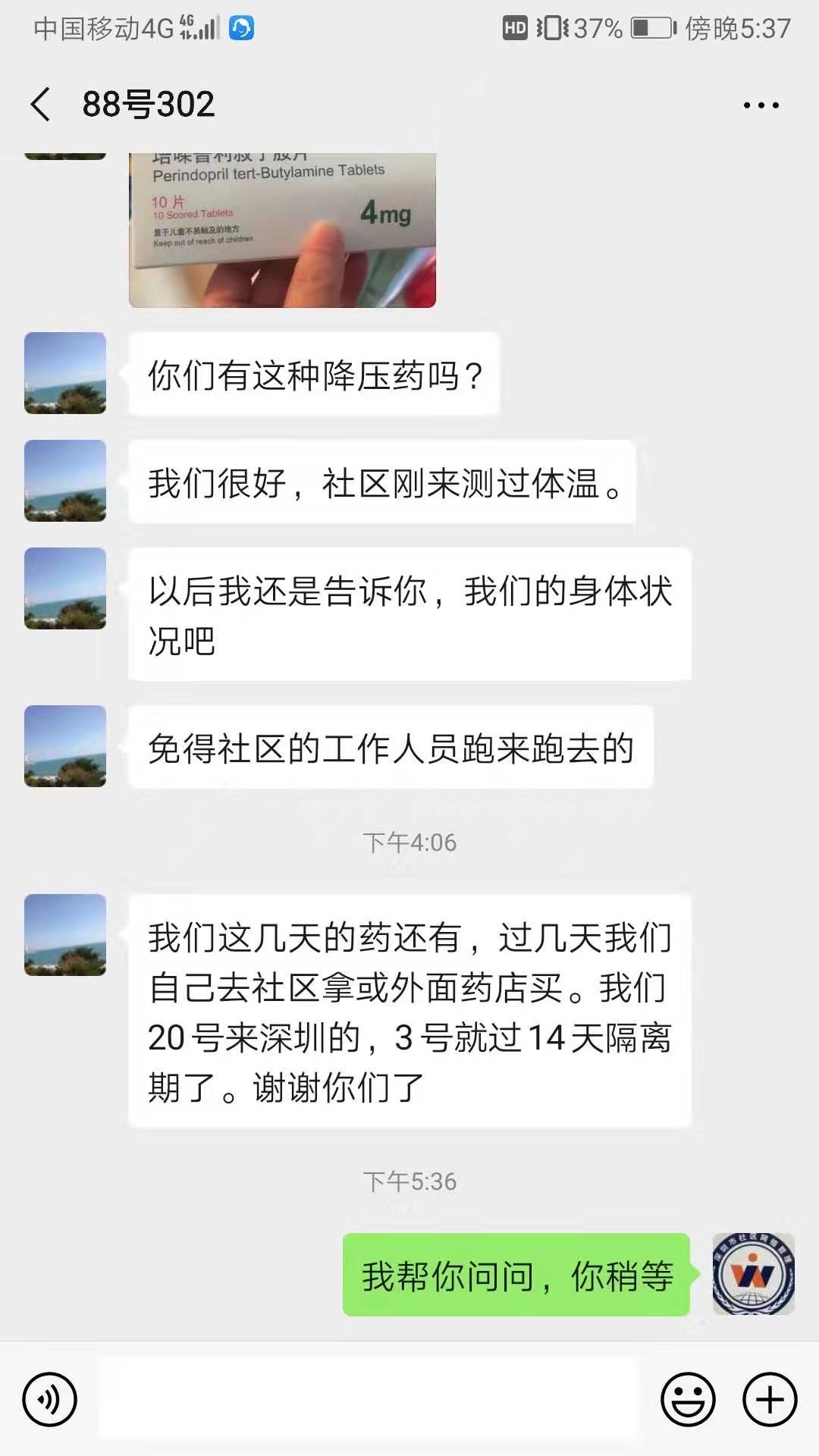 社区网格员与居家隔离人员“一对一”微信服务,提供帮助。