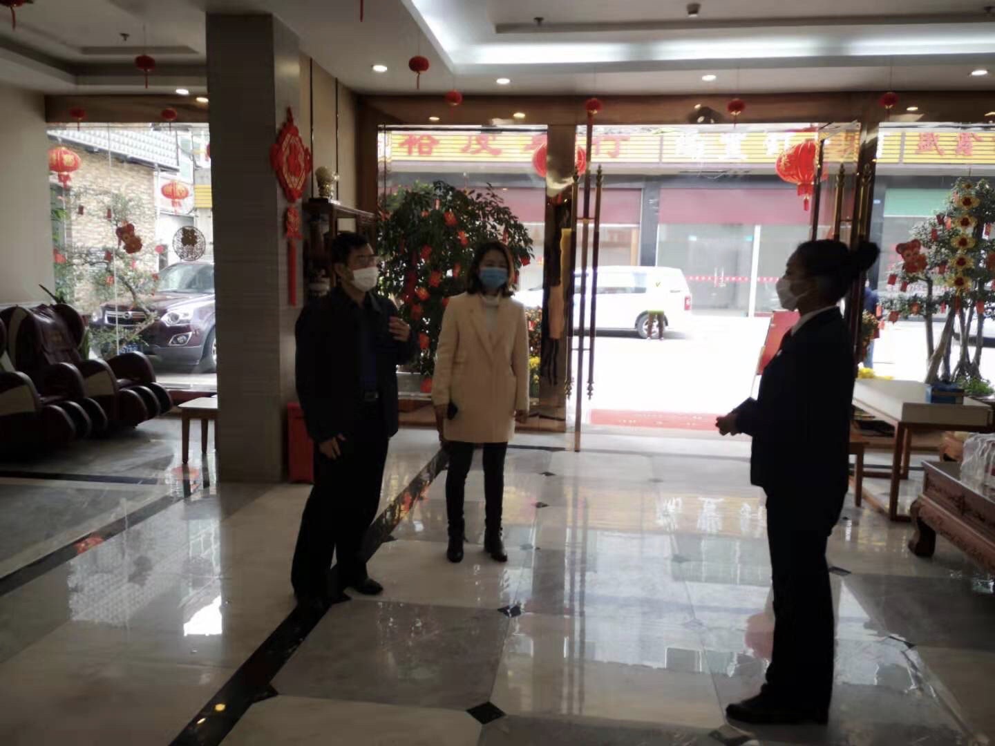 宝龙街道党工委书记杨旭光同志、街道党工委委员、群团工作部(宣传部)部长于也乔同志到同心社区集中安置观察点了解情况。