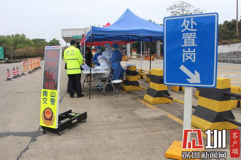 见圳客户端·深圳新闻网2020年2月3日讯(见圳客户端、深圳新闻网记者吴梓欣)眼下正值返深高峰期,为控制疫情影响,近日,深圳交通运输局在城市出入要道都设置了检疫区。“打开车窗,带好口罩,测量体温……”2月2日,记者在南头收费站看到交警正为过往车辆及人员测量体温,在身着“南山交通”黄马甲的交通检查队伍中还有一抹熟悉的红色——深圳义工。