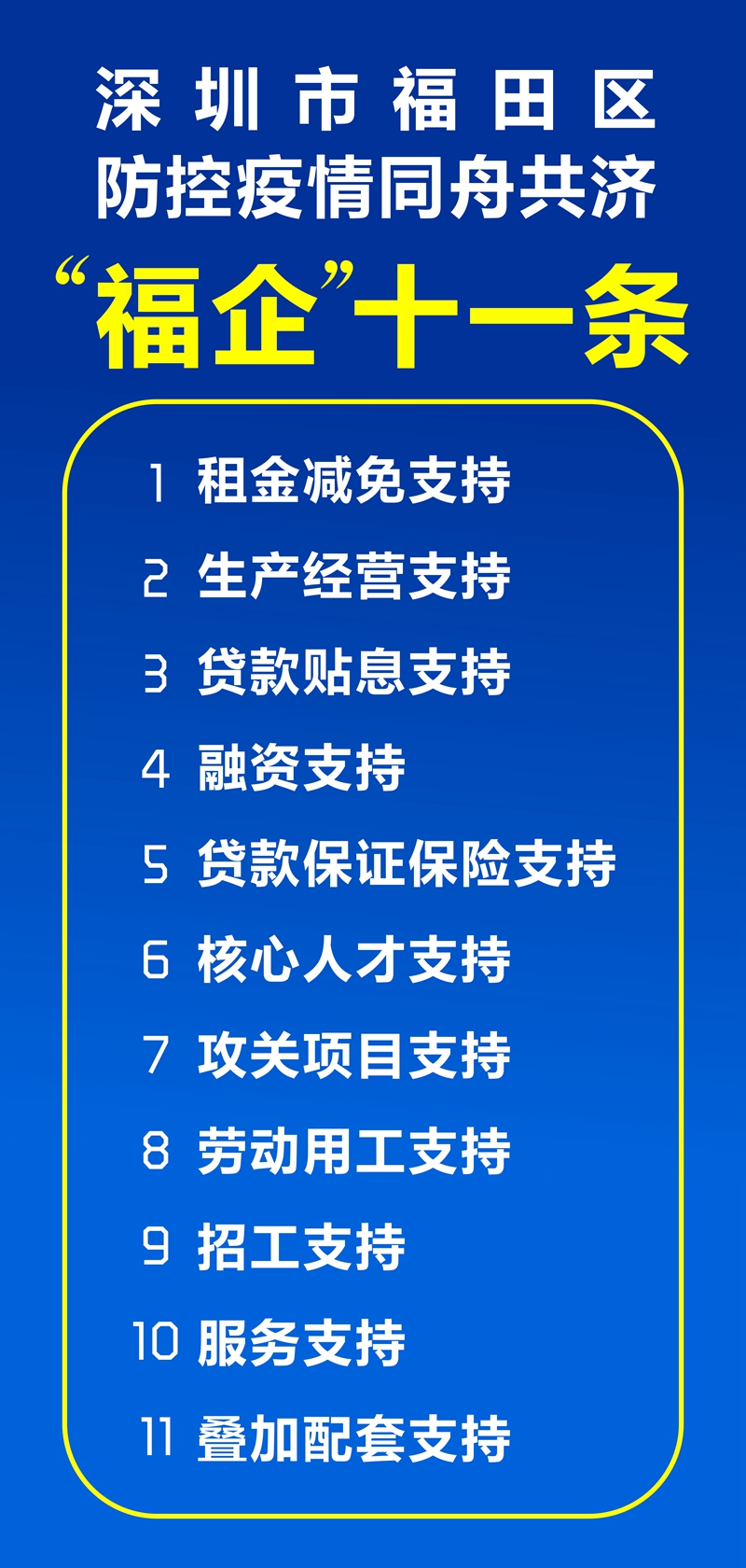 深圳新闻网2月4日讯(见圳客户端、深圳新闻网记者 刘屹龙 通讯员 温现青)近段时间,受疫情防控影响,中小微企业承受的压力广受关注,如何在防控疫情的同时,落实“六稳”要求,支持企业渡过难关,是摆在全社会面前的一道难题。2月3日,深圳市福田区重磅推出《深圳市福田区防控疫情同舟共济“福企”十一条》(以下简称“福企”11条),支持受疫情防控影响的行业企业渡过难关。这是全国首个县区政府出台的防控疫情应急扶持企业政策。这一政策的推出,也恰逢习近平总书记2月3日在中央政治局常委会上要求“密切监测经济运行状况,聚焦疫情对经济运行带来的冲击和影响,围绕做好‘六稳’工作,做好应对各种复杂困难局面的准备”,可以说这一政策的推出恰逢其时。