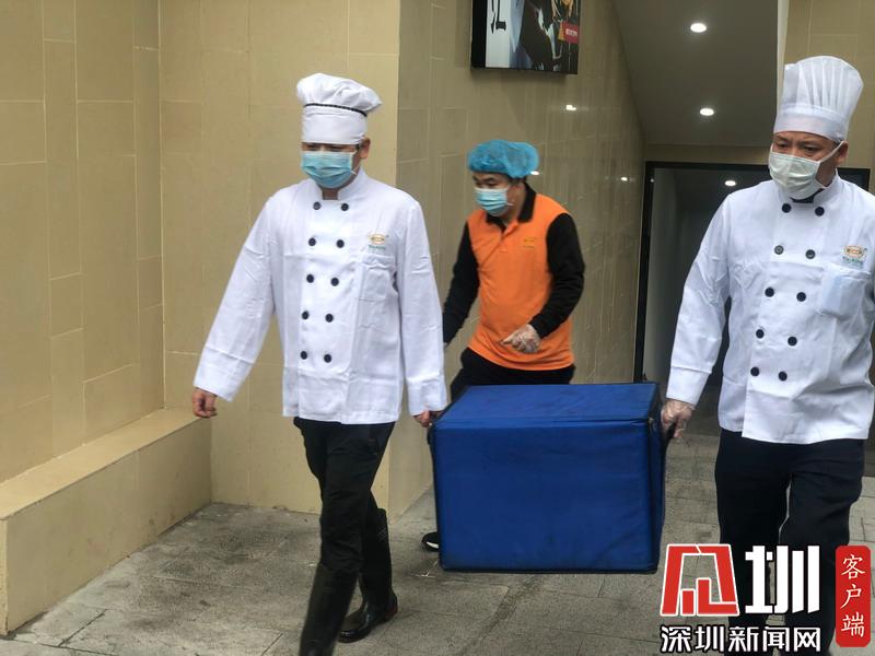 为新型冠状病毒感染的肺炎疑似病人准备的餐食到达深圳禾正医院(深圳市新型冠状病毒感染第二隔离区)。
