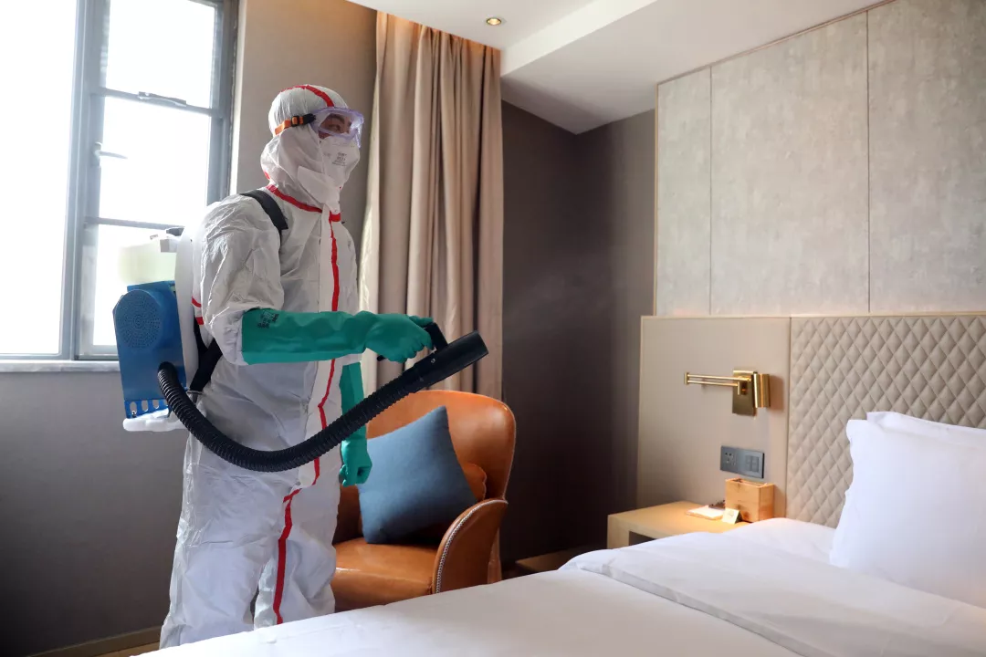 ▲疾控人员对病人住所进行终末消毒