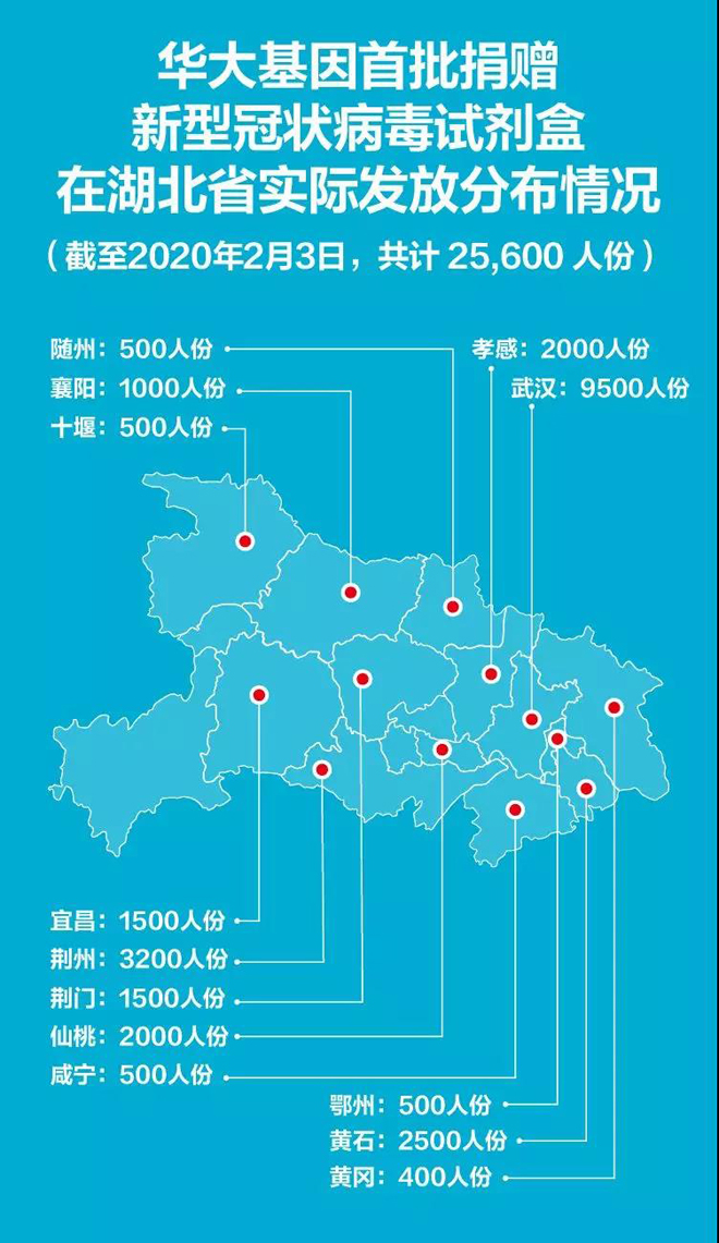 见圳客户端.深圳新闻网讯(记者 郑创彬)2月5日,记者获悉,华大基因首批承诺向湖北地区捐赠的2万人份新型冠状病毒试剂盒(每盒50人份),实际已发货到位2.56万人份。其中,武汉市发放9500人份,湖北(非武汉地区)发放1.61万人份。目前,针对湖北地区的试剂盒捐赠仍在进行中。