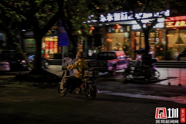 夜幕之下,路上只见外卖、快递小哥在奔忙。