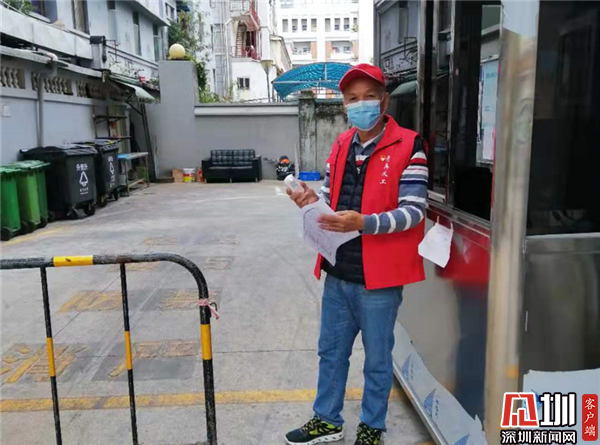 除自发捐款赠物外,退役军人们还积极发挥街道退役军人义工队的力量。由于疫情防控原因,需要避免人员聚集,减少外出,老兵们想为疫情防控作贡献却找不到好的方法。“不外出不聚会,我们做好防护,就待在自己住的小区里做贡献。”考虑到近期返深人员逐渐增多,居民小区防疫工作任务越来越重,作为街道老兵义工队的队长,林贞辉在群里向老兵们发起这样的倡议,“大家看到这个提议都很支持,想要参加,这样既能为防疫作贡献,又减少传染的风险,战友们都很高兴。”