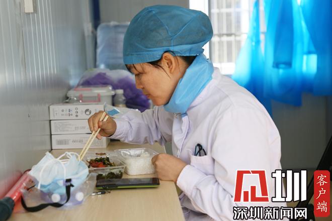 6日中午12点,已经在盐田区盐排高速防疫检测点工作了4个小时的晏医生,接过搭档交警带过来的外卖盒饭,拿到临时搭建的休息棚中,洗完手摘下口罩准备用餐。晏医生一边吃饭一边向记者说:“现在不错了,有休息棚、还能吃上盒饭,初四值班那会我们吃的方便面,找点热水都不容易。”由于晏医生的丈夫也是一名医生,疫情突发,夫妻俩都必须在岗在位。为了照顾家中年幼的两个孩子,晏医生只能让已经回江西老家的父母大年初二就坐车回来。虽说折腾,好在老人非常理解儿女的职业,从未有过一丝怨言。(见圳客户端、深圳新闻网记者郑创彬)