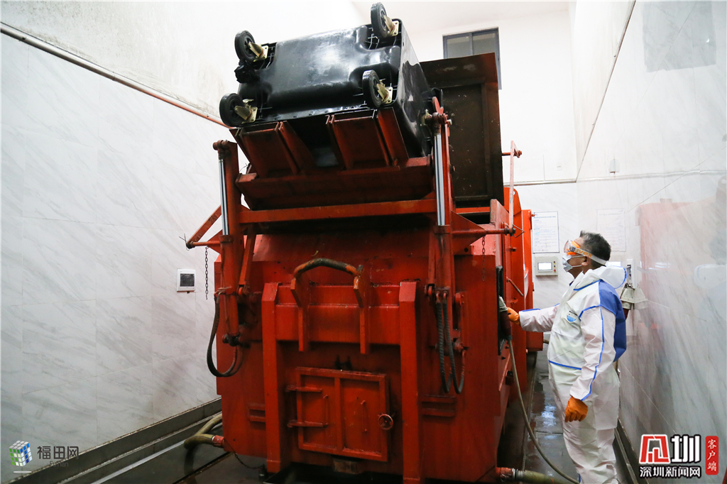 现代化城市生活固然便捷,但是也制造巨量的生活垃圾。垃圾清运人员凌晨3点半起床后开始准备一天的工作。这段时间,转运站配置1:250的高浓度消毒液,一桶消毒液够用一个垃圾转运站。记者看到,电动垃圾转运车上的四个环卫消杀工作人员穿着厚厚的白蓝色隔离服,全副武装迎接来自辖区源源不断运过来的垃圾桶,随着垃圾转运车后滋滋作响的电流声,车后的平板放下来了,一桶桶垃圾平稳有序的拽拉进垃圾转运站进行压缩,因工作服的关系,工作人员眼罩上经常被一层厚厚的水雾糊上,工作期间会把手套摘除后,从手心处甩出一把把汗。