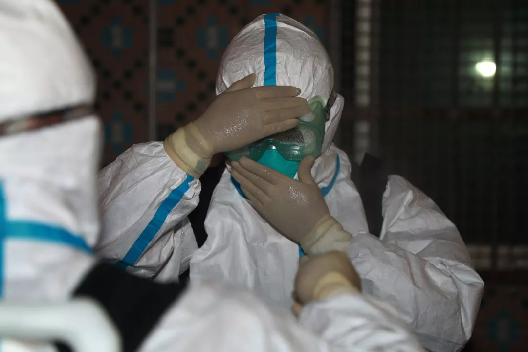 ▲疾控人员正在穿戴防护设备