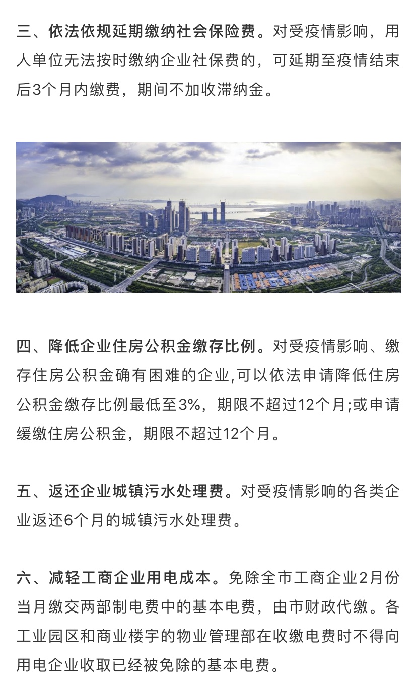 见圳客户端·深圳新闻网2020年2月8日讯(见圳客户端·深圳新闻网记者 潘润华)为应对新型冠状病毒感染的肺炎疫情,支持企业共渡难关,2月8日,深圳出台16项措施,其中包括公租房、人才住房免除2个月租金,降低企业住房公积金缴存比例等。该措施自发布之日起实施,有效期至2020年12月31日(有明确期限规定的从其规定)。