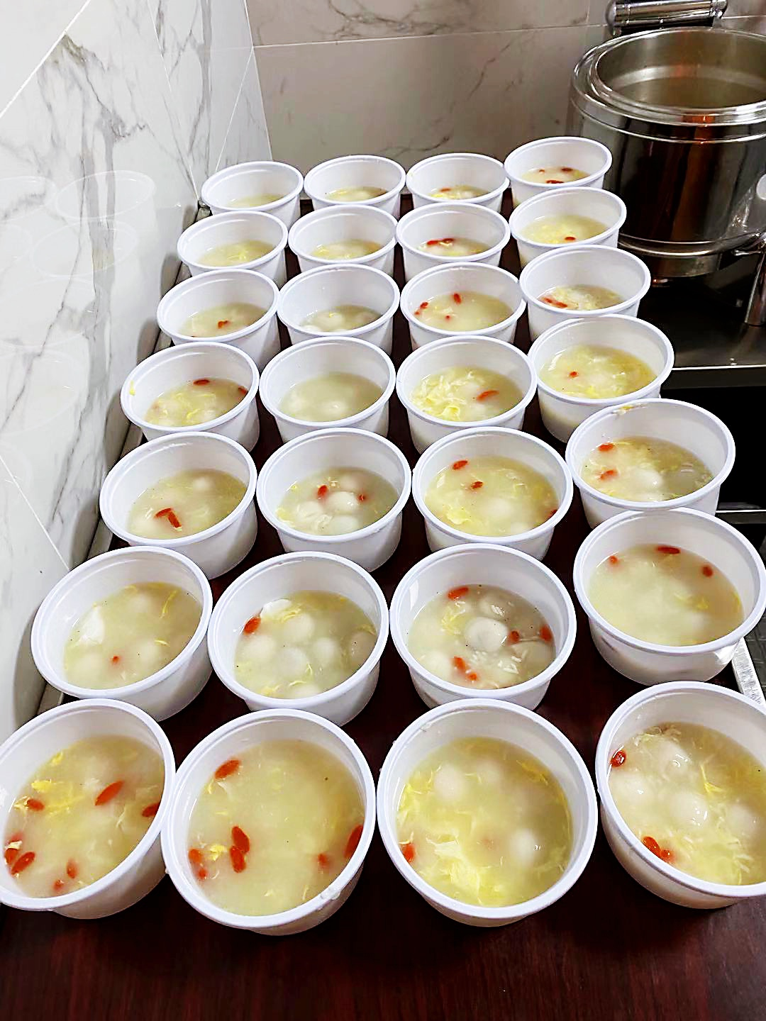 当天中午和晚上,发热门诊、感染科、隔离病房、检验科等一线的医护人员,除了收到可口的饭菜外,还收到了一碗热气腾腾的汤圆。让他们意外的是,汤圆盒上还贴了温馨的字条,“坚守一线的医护们,你们辛苦了!今天是元宵节,祝你们平平安安、健健康康!待到春暖花开,疫情消退,我们再阖家团圆。”
