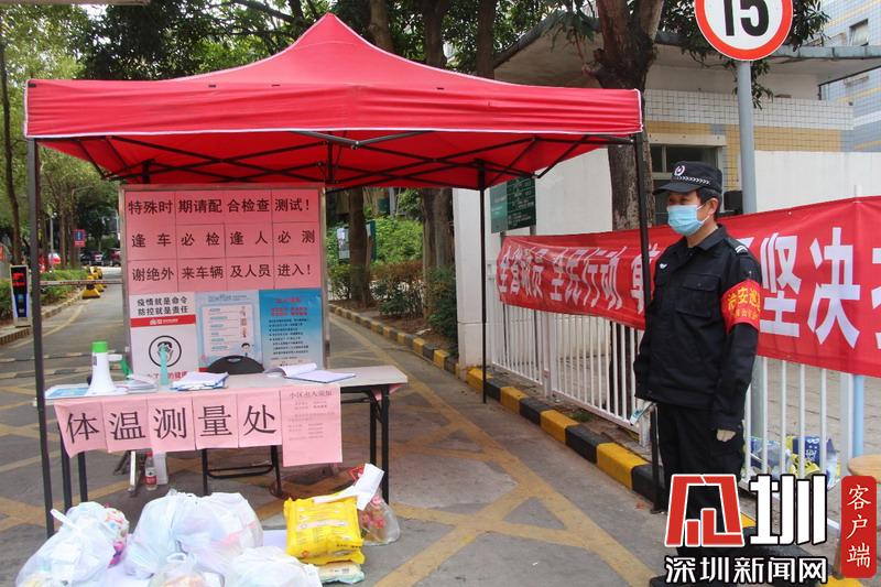 福田梅山苑小区门口设有体温测量处。