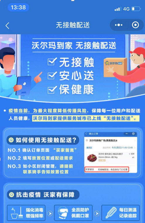 1、下单时备注选择“无接触配送服务”,尽量避免面对面接触。