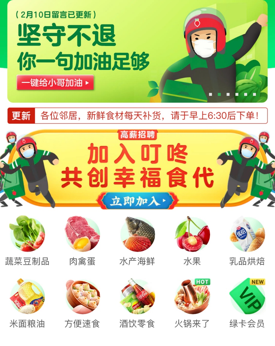 商品情况:货品充足,品类齐全,水果蔬菜、肉禽单品、海鲜水产等应有尽有;部分蔬果库存不足,需抢购,运力紧张。