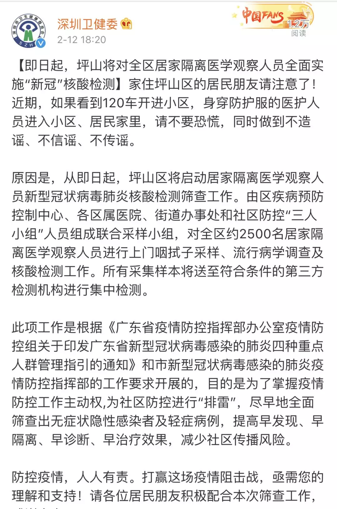 彻底“排雷”!深圳免费为所有居家隔离者检测“新冠”病毒核酸
