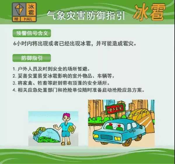 各市县先后发布了冰雹橙色预警,冰雹橙色预警信号表示6小时内将出现或者已经出现冰雹,并可能造成雹灾。
