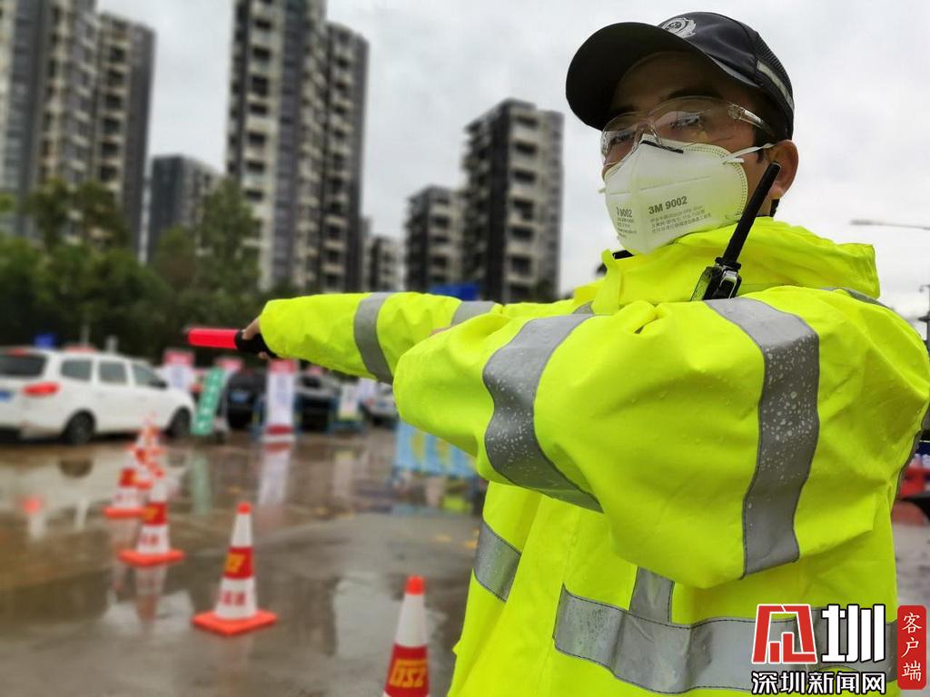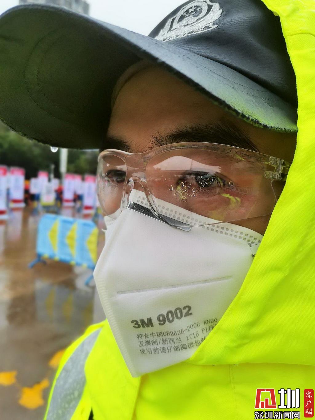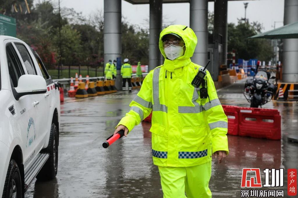 雨中执勤的深圳交警民警。
