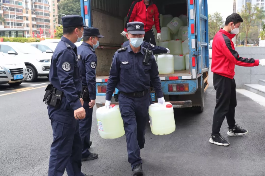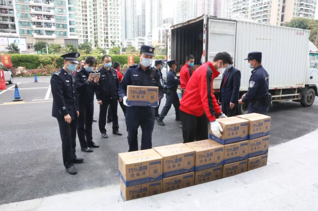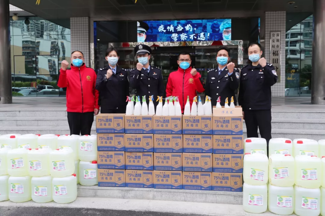 当天16时许,爱心企业代表肖先生带着50桶20公斤消毒液、480瓶消毒酒精、20个喷壶来到了福田分局,捐赠给了福田警方。福田分局党委委员、政治处主任桂礼强代表分局接收捐赠抗疫物资,并对爱心企业表示感谢。