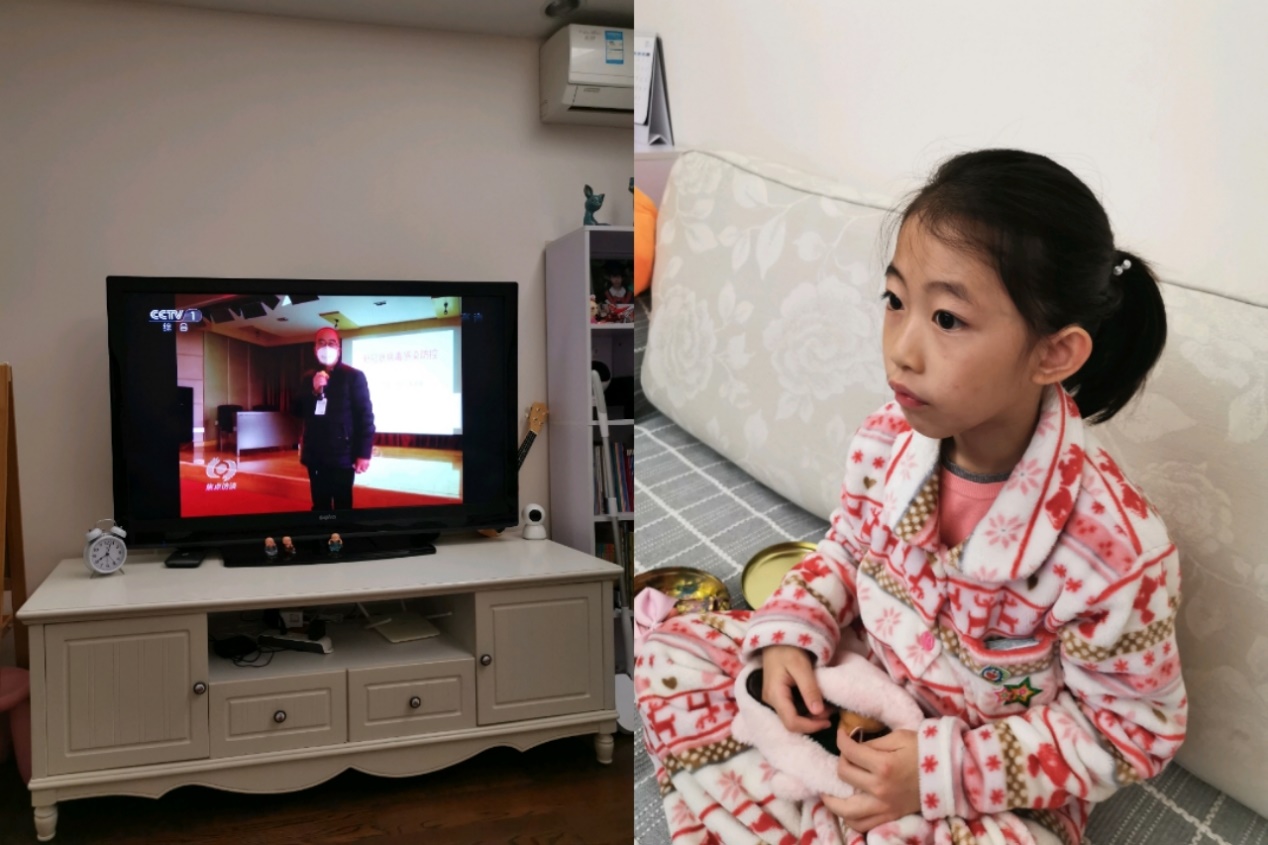 晚上固定时间一家人看新闻和焦点访谈,有时候有些好的文章,我们会读给她听。