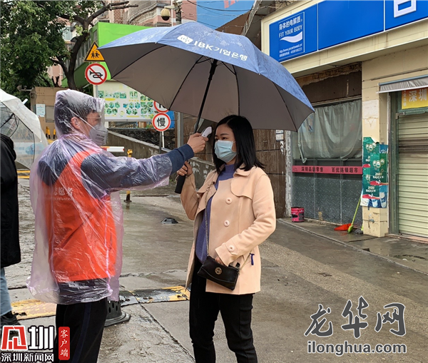 2月14日上午,当记者在大浪街道龙胜社区党员先锋岗见到何耀良和孙杰时,他们身上的衣服还在隐约冒着湿气。原来为了避免下雨时市民排队检查出入证淋湿了身子,他们冒雨在各测温点加搭帐篷,顾不上给自己防雨,一会儿便全身湿透了。“雨这么大,帐篷必须要尽快搭好,那时候满心想着都是怎么才能更快一点,根本顾不上躲雨啦!”孙杰爽朗一笑道。