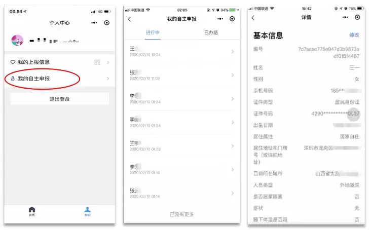在进出小区时,可在“深i您-自主申报”小程序首页点击左上角“二维码图标”或前往“我的>个人中心”点击“我的上报信息”向工作人员出示“深i您-自主申报”平台生成的系统认证图码,凭该图码出入小区,无需作重复申报。
