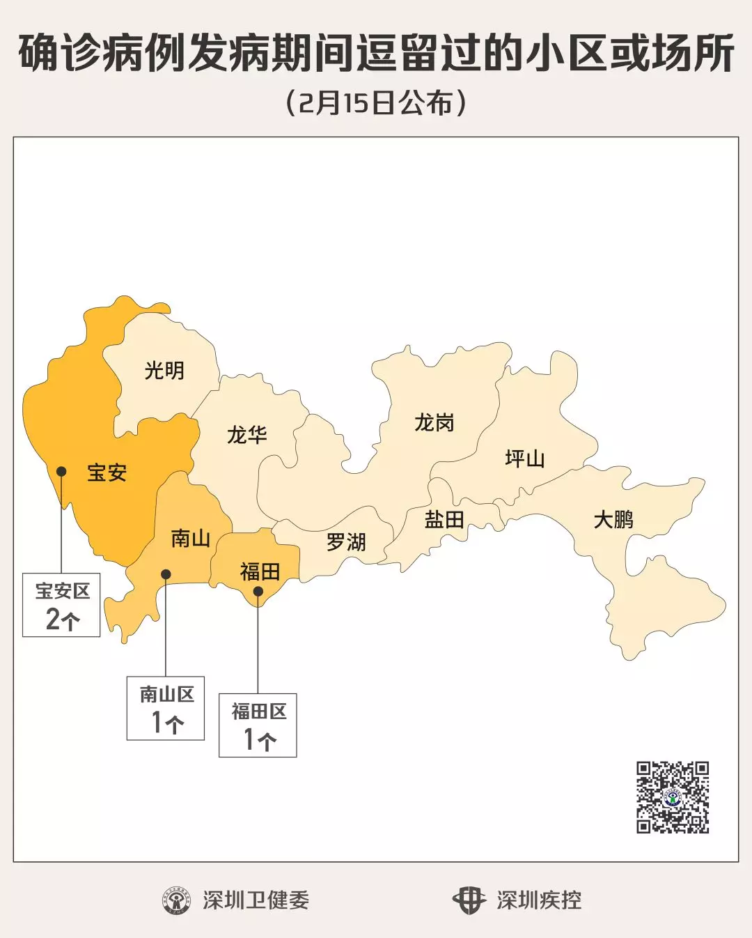 经过疾控专业人员的流行病学调查确认,2月15日,深圳新公布4个“涉病”小区(场所),有新确诊的病人在发病期间曾经逗留。