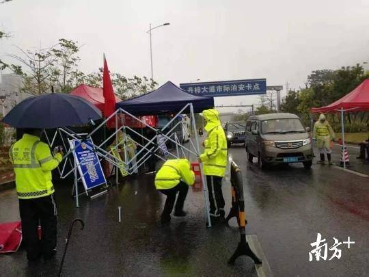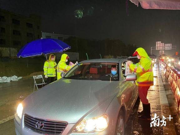宝安区罗田检疫站指挥部总指挥,石岩街道党工委副书记、人大工委主任邓亚虎,石岩街道副主任林志明和罗田交通联合检疫站临时党支部党员冒雨检查。当晚,深圳市公安局经侦支队支援4名民警在现场冒雨防疫检查。