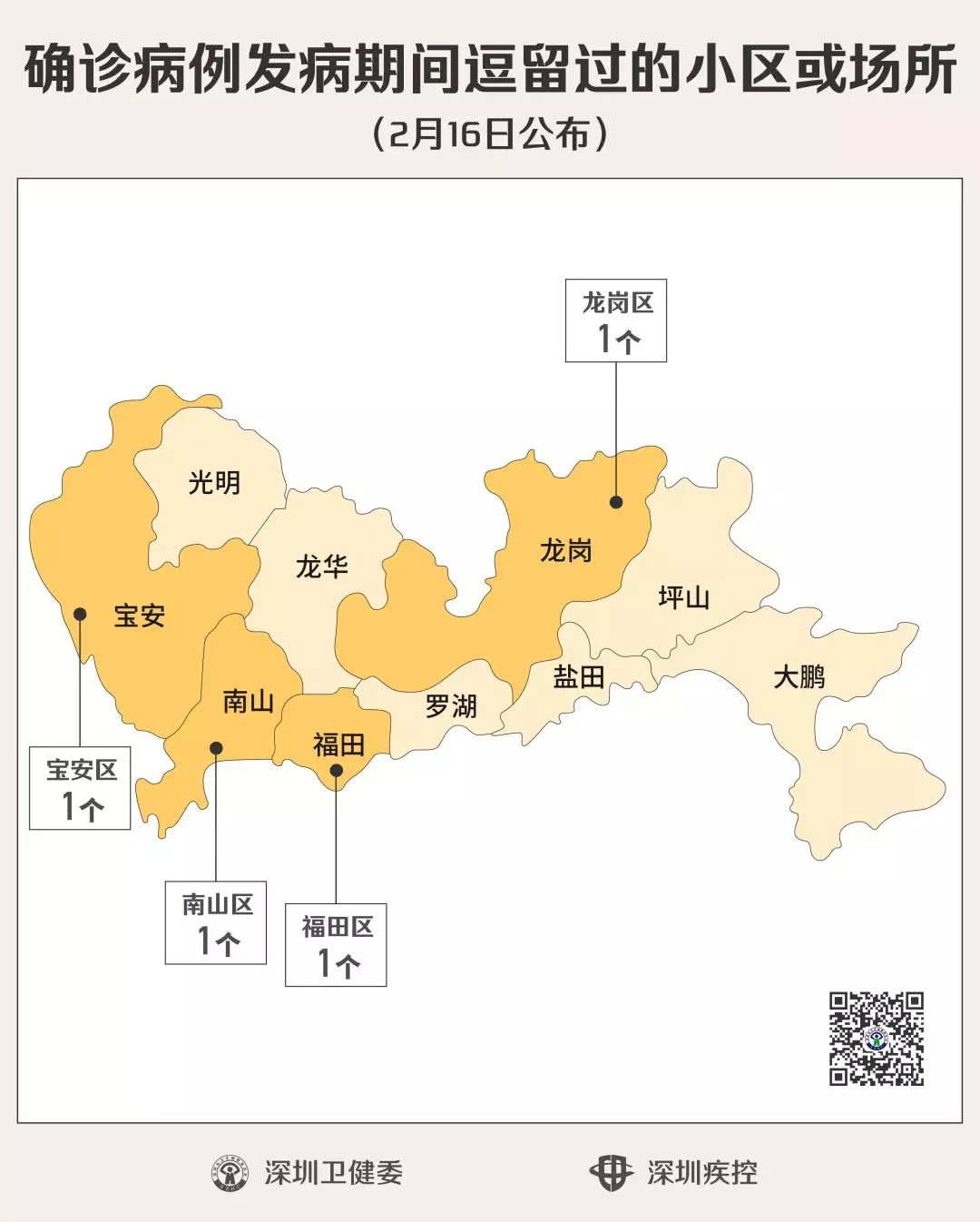 经过疾控专业人员的流行病学调查确认,2月16日,深圳新公布4个“涉病”小区(场所),有新确诊的病人在发病期间曾经逗留。