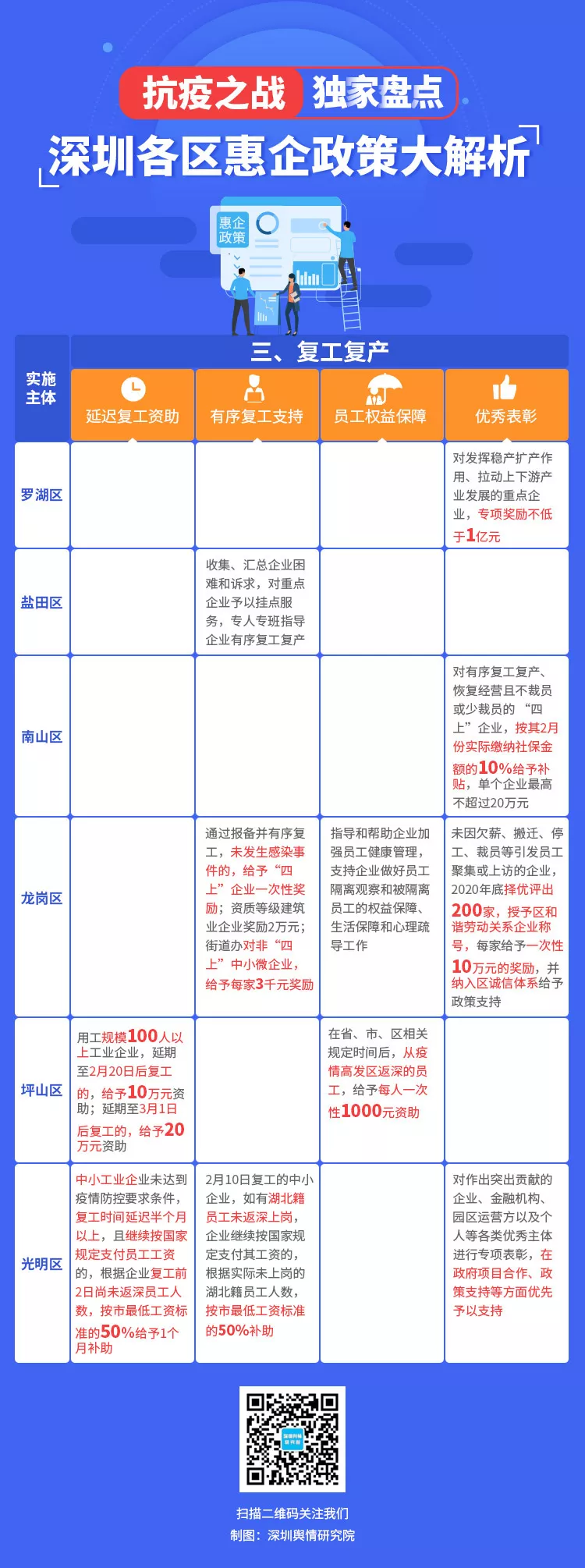 老板看过来,这有深圳各区惠企政策优劣对比表,帮你算明白了!