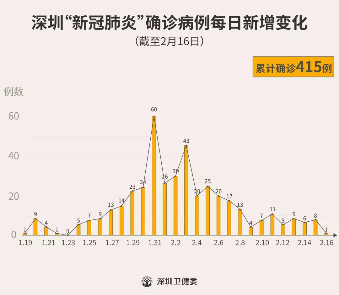 原标题:最新!深圳新增1例,累计415例!(截至2月16日24时)