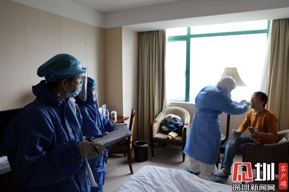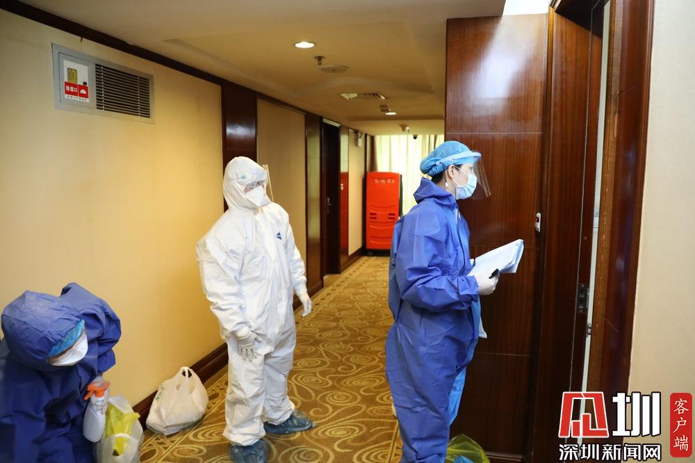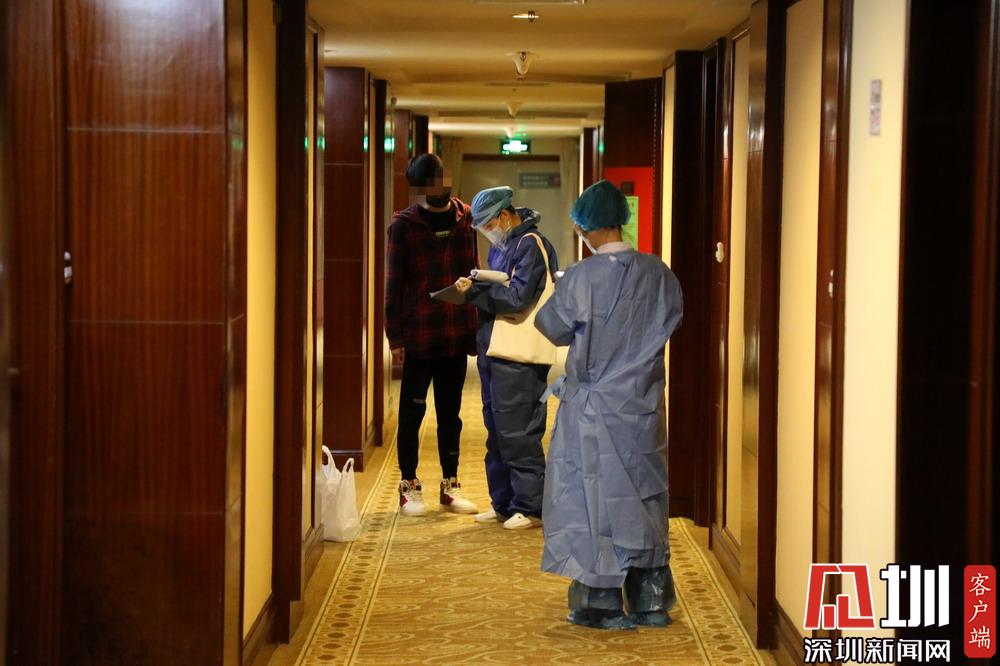 “您好!我们是医院来做核酸检测采样的。”2月15日上午,新桃园酒店一些楼层的走廊里,响起了一阵阵敲门声和一句句简单的自我介绍,这是协和深圳医院的核酸采样流调小分队来了。