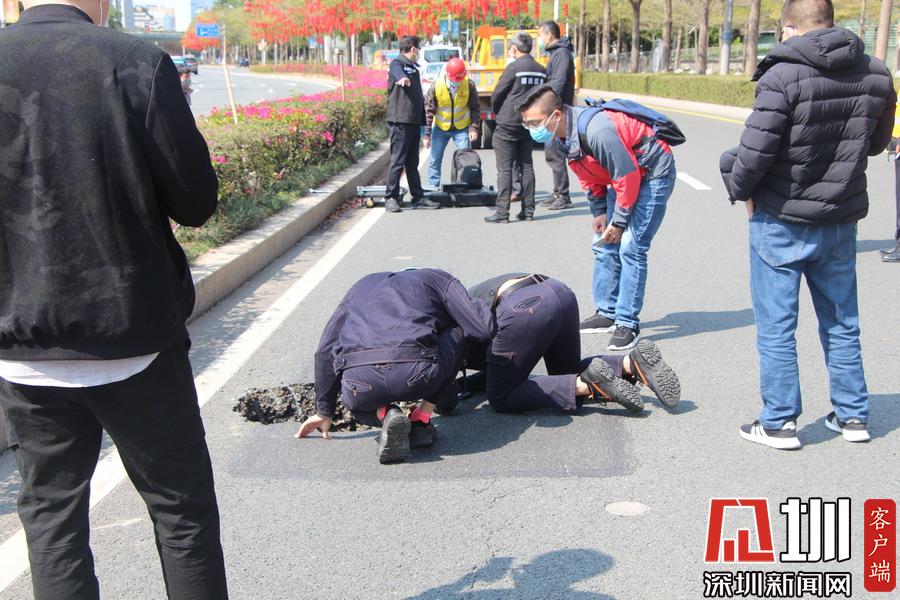 见圳客户端·深圳新闻网2020年2月18日讯(见圳客户端 深圳新闻网记者 吴梓欣)2月18日上午10点,有网友报料称,福田区深南大道辅道市民广场一路段发生地面塌陷。上午10点40分,记者在现场看到,该路面有一个直径约一米、深约一米的坑口,旁边还有一道长约20米的裂痕。下午3点,深圳市交通运输局回复深圳新闻网记者称,该处位于地铁2号线上方,周边地下管道完好,该辅道路段约有40~50米路基土疏松,塌陷原因是该路段地下工程施工对地基扰动且回填土未夯实。该局已安排养护单位立即进场开挖回填抢修,并于下午4点10分完成砼回填抢修,预计本周五恢复交通。