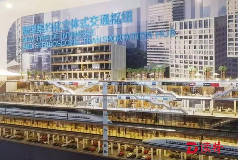 比如,枢纽建筑地下六层,其中上面三层为轨道及交通换乘区,实现站城、市政道路无缝对接;下三层为地下车库,设4900多个停车位。上盖开发部分定位为集枢纽立体商业、甲级办公、国际星级酒店及服务式公寓、商务公寓于一体的超级枢纽城市综合体。