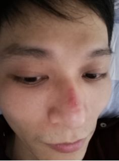 ▲9个小时的工作下来,林培挺的鼻梁早已被口罩勒红。