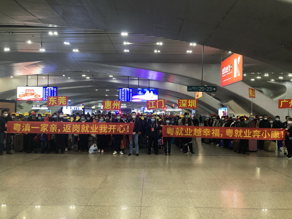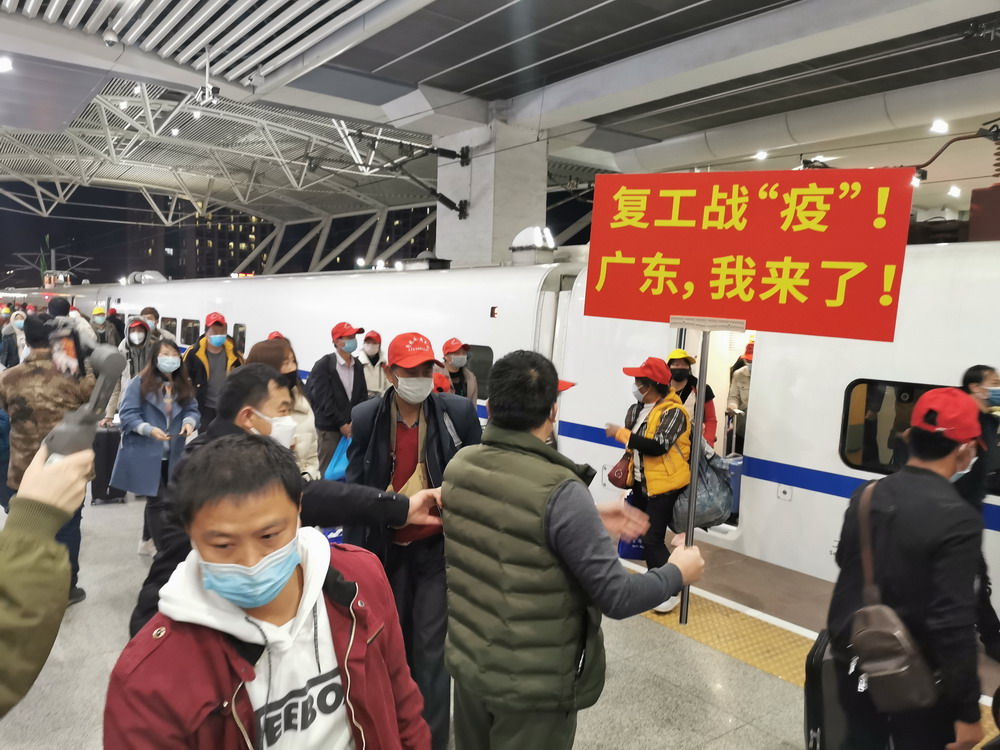 目前,在全省上下全力抗击新冠肺炎疫情的同时,广东各类企业已陆续复工复产。针对节后部分务工人员返程难、部分企业用工难的问题,广东省人社部门在全面落实省委省政府疫情防控决策部署的前提下,主动加强与劳务输出省份沟通对接,对疫情相对平稳、来粤就业人员相对集中的云南、四川等部分省份,联合当地人社部门共同组织开行“点对点”返粤返岗专列,为务工人员提供全流程的返岗对接服务。据悉,在本趟列车开行前,广东省人社部门根据重点企业和项目复工复产安排,向云南省人社部门提供不同时段的企业空缺岗位共11万个,由当地人社部门按需组织发动务工人员并开展集中健康检测,出具健康证明;途中,云南人社部门会同铁路部门,共同落实好务工人员进站、候车、乘车、出站等环节的疫情防控和客运服务等措施,确保复工人员安全、有序、温馨出行;到粤后,广东人社部门提供专车将务工人员接驳至企业,帮助企业做好疫情期间员工组织接收、上岗复工等准备工作。广东省人社厅相关工作人员表示:“今年受疫情影响,节后短期缺工现象比往年更为突出。特殊情况需要特别举措,除了让务工者免费乘坐返岗专列,我们还为一些去汕头、阳江等较远地区企业而没法当天到达的零散务工者,贴心地提供免费住宿,还买好次日去企业所在地的车票,送他们上车,并对接当地人社部门安排车辆接驳至厂。我们通过这种‘一条龙’无缝对接服务,既满足企业复产的用工需求,又降低返程运输的疫情传播风险”。