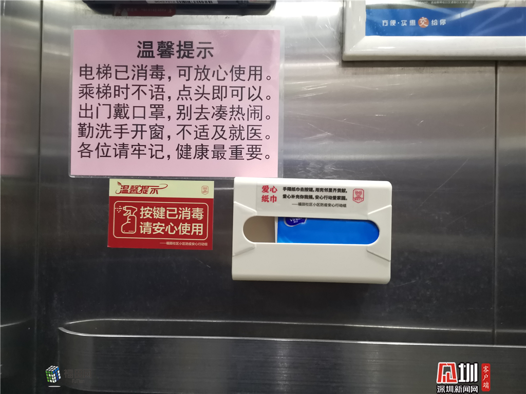 爱心纸巾和电梯按键保护膜受到居民好评。