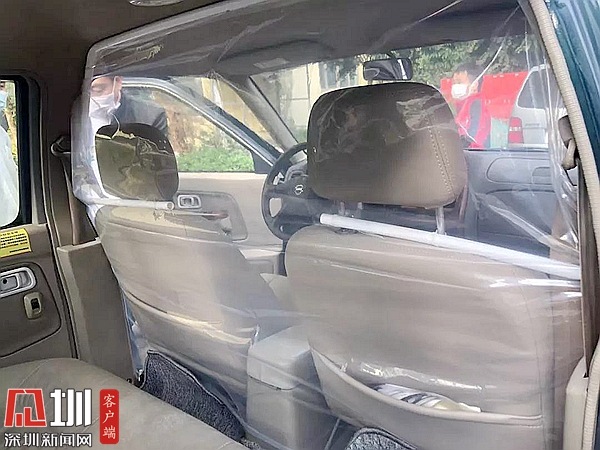给车戴上“透明口罩” 龙岗36部转运车内加装前后排防护隔离膜