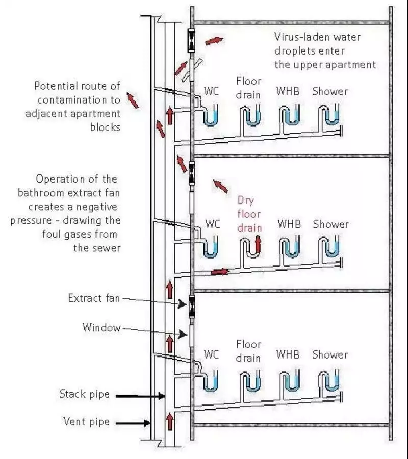 2003年SARS期间,香港“淘大花园事件”备受瞩目,目前对该事件的病毒传播方式复盘,可能由于该楼栋管道设计存在隐患。