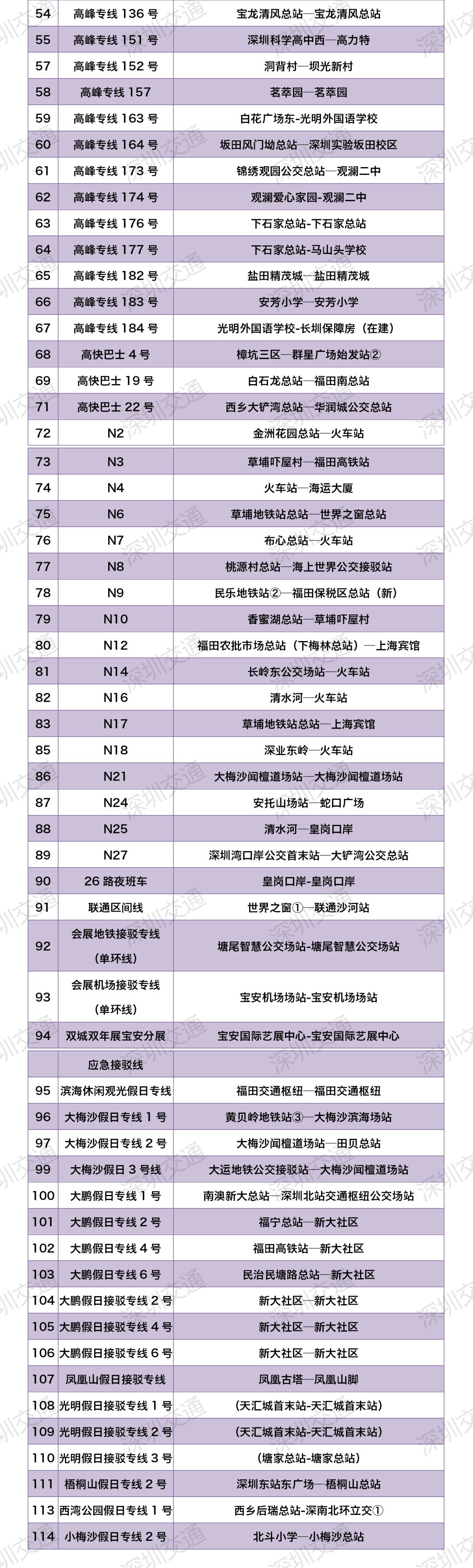 见圳客户端·深圳新闻网2020年2月21日讯 据深圳交通微信公众号消息,根据国家、省、市针对节后复产复工相关要求,结合目前新型冠状病毒疫情防控需要及行业实际情况,经研究↓2月24日起,深圳除以下114条公交线路外,其他公交线路恢复正常运营: