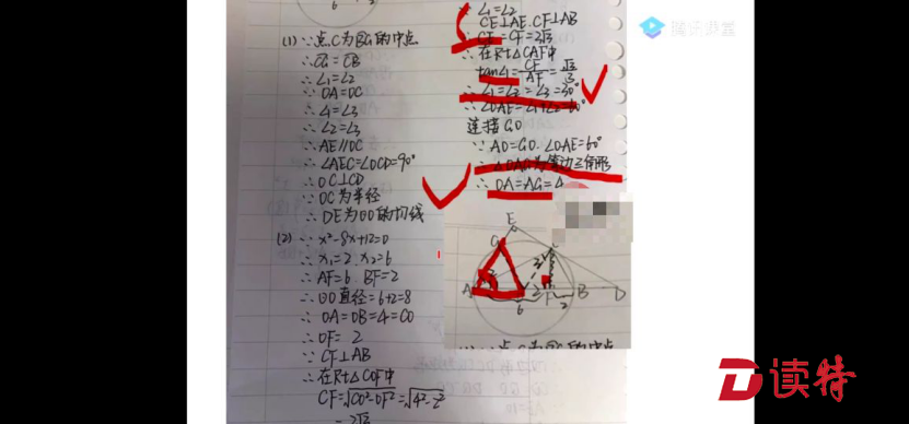 红岭中学初三生王龙在腾讯课堂的作业截图。